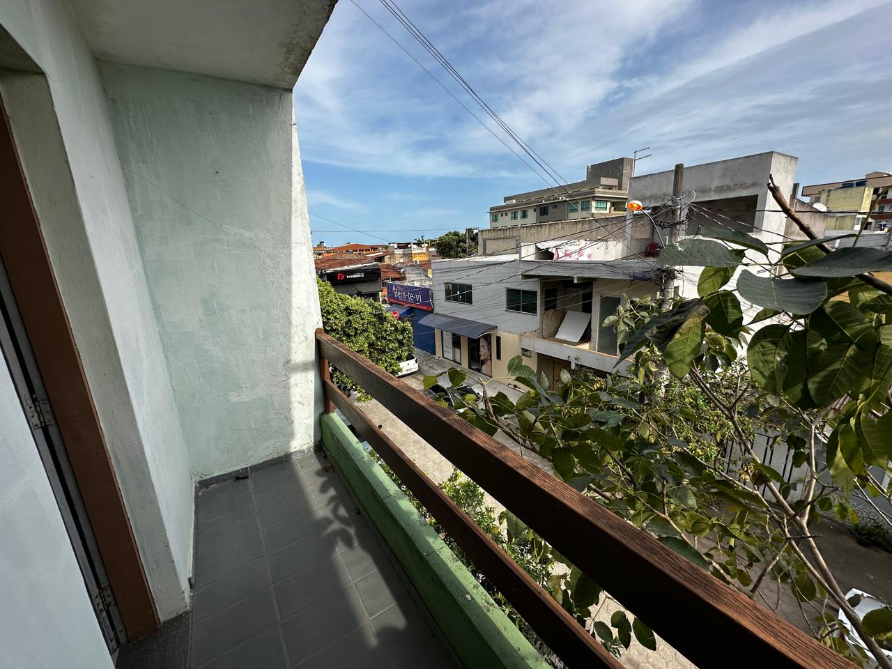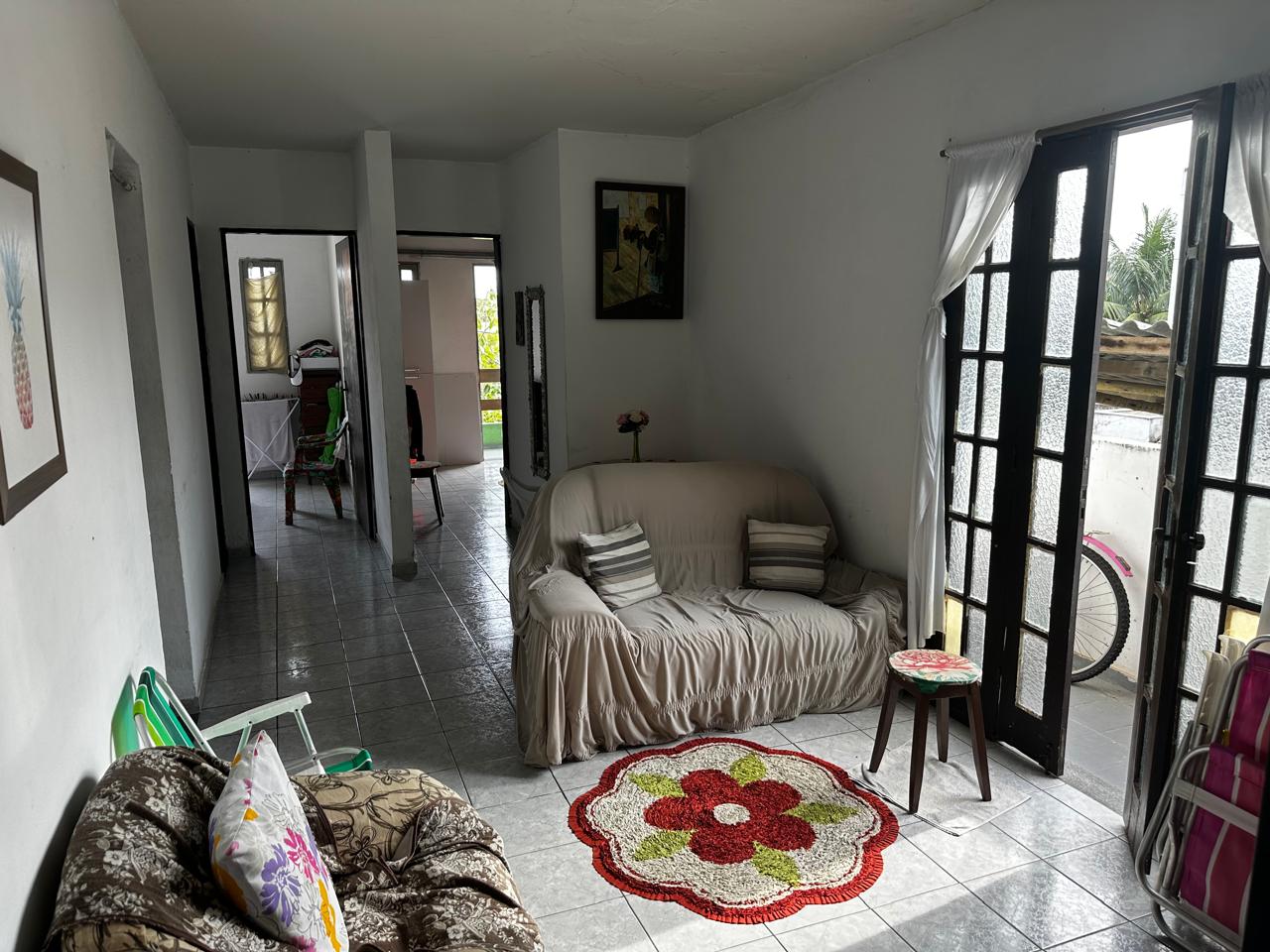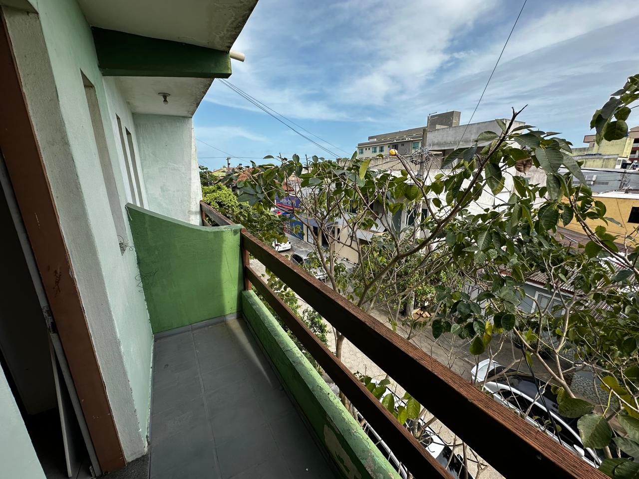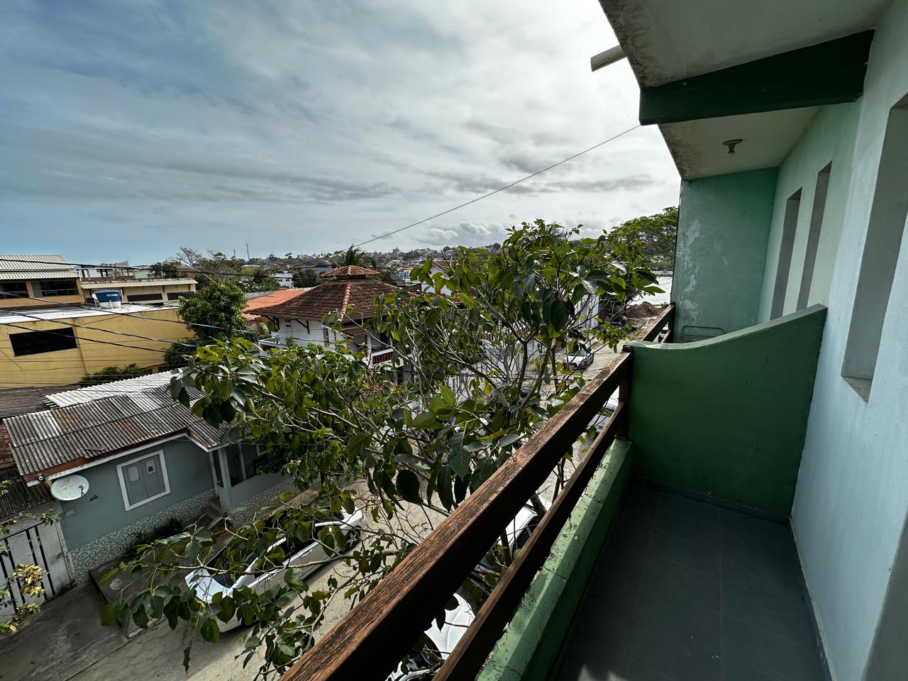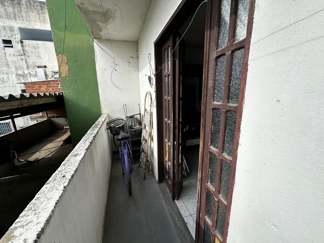 Apartamento no segundo pavimento do prédio residencial de três pavimentos, contendo 02 quartos com varanda, um deles suíte, banheiro social, circulação, sala de estar com varanda, cozinha, área de serviço e garagem presa para 01 carro.