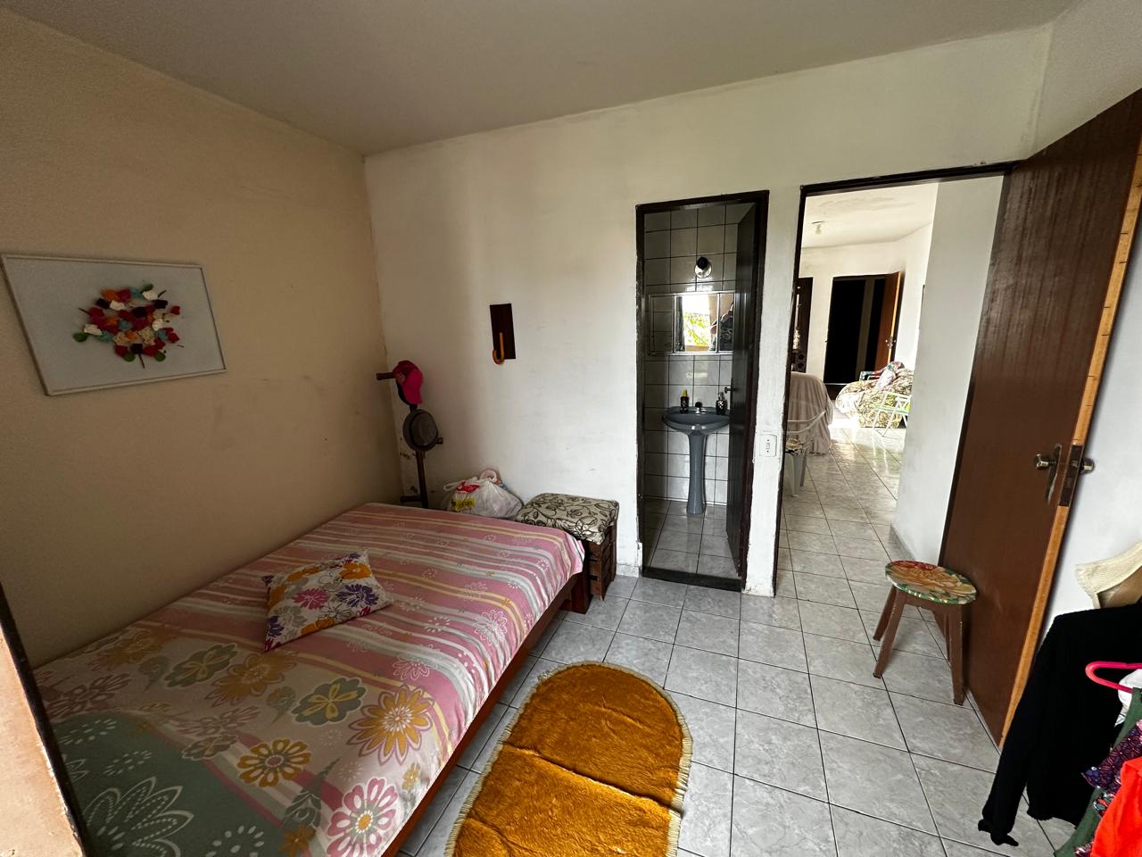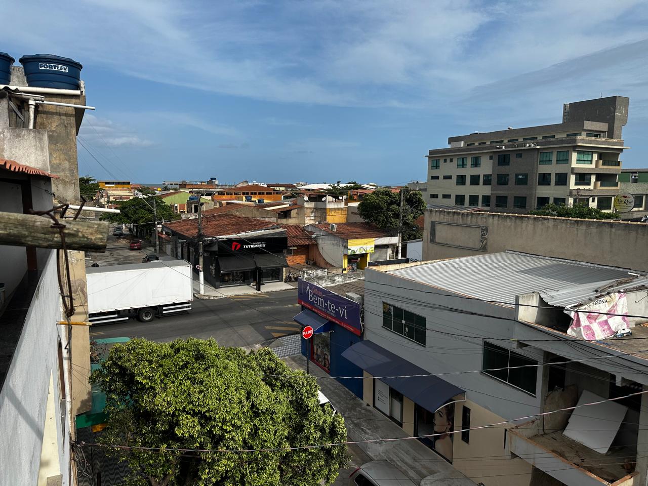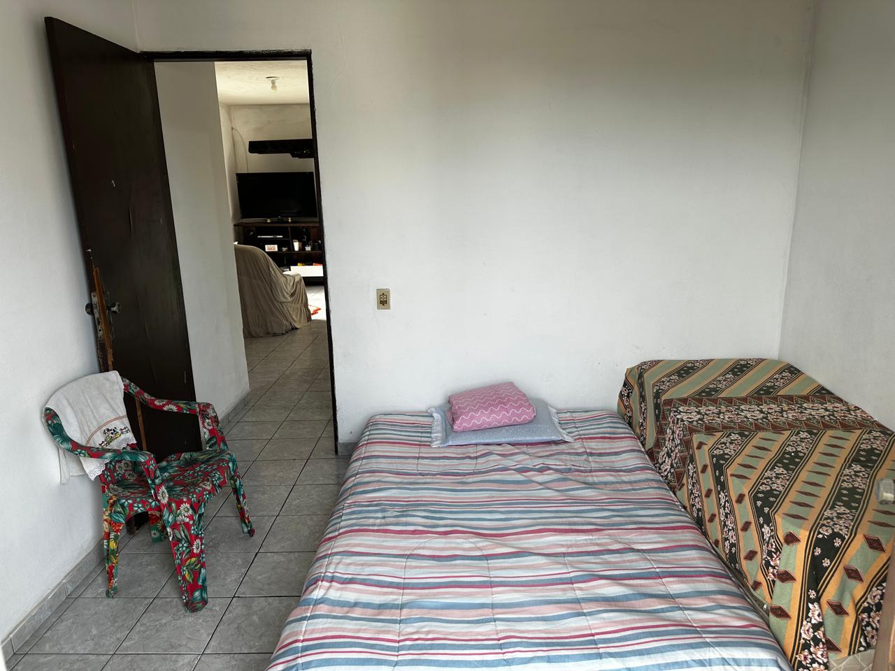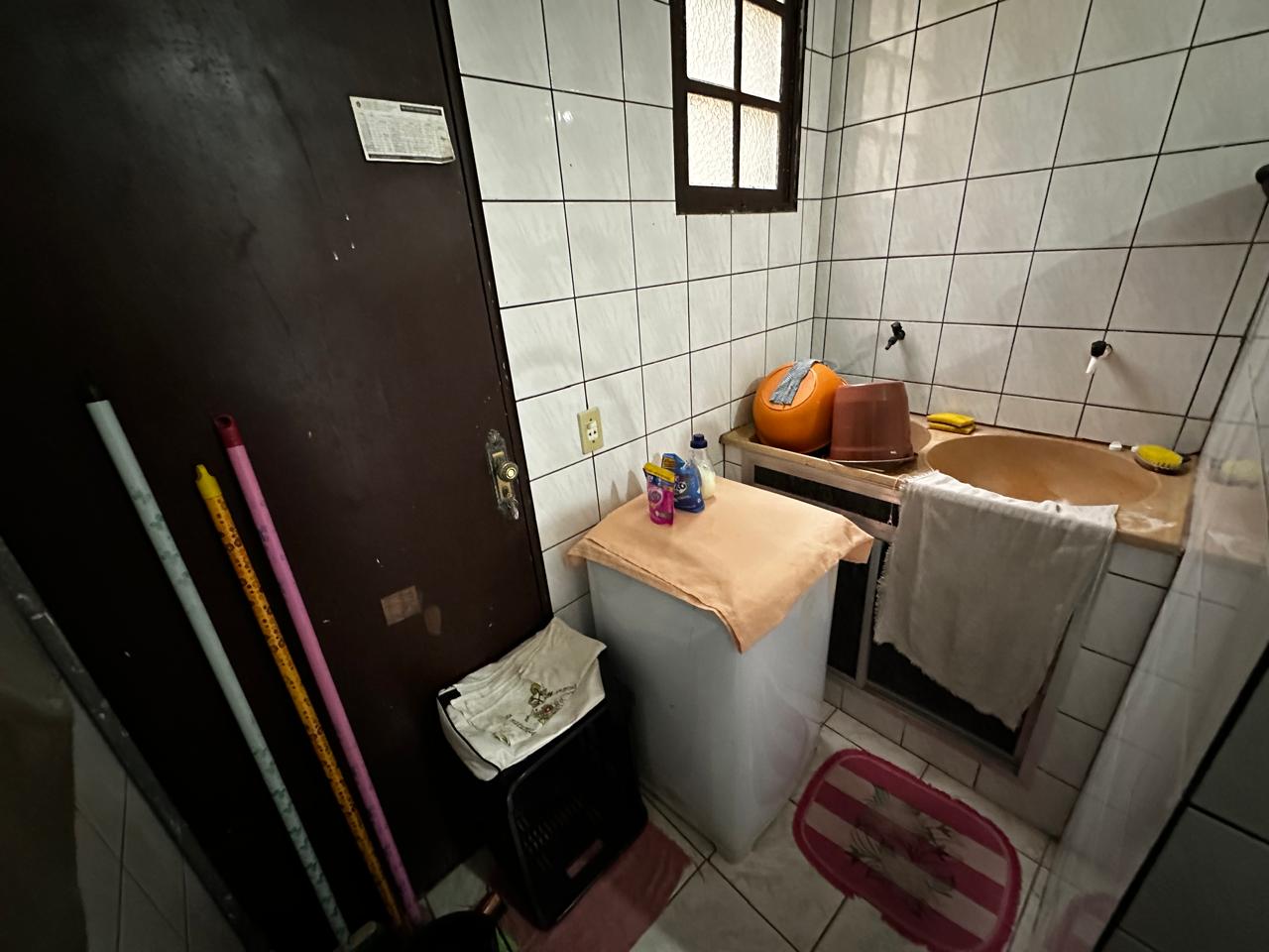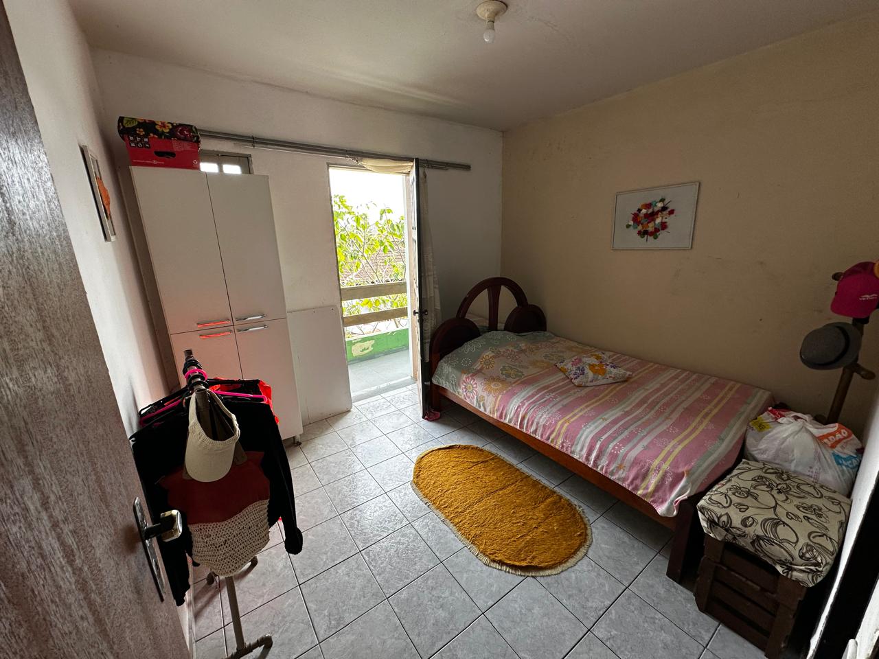Apartamento no segundo pavimento do prédio residencial de três pavimentos, contendo 02 quartos com varanda, um deles suíte, banheiro social, circulação, sala de estar com varanda, cozinha, área de serviço e garagem presa para 01 carro.