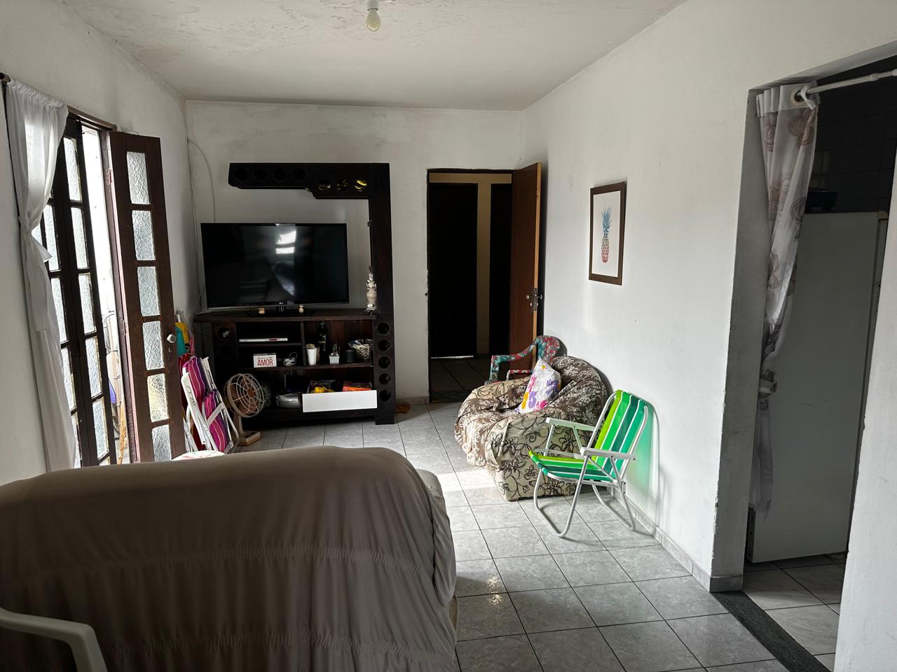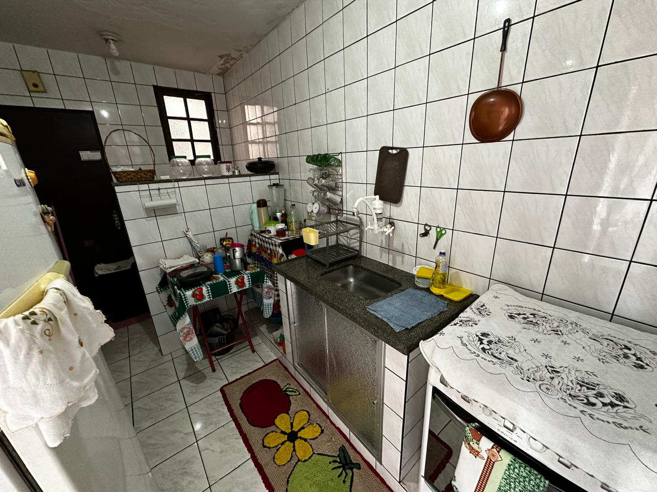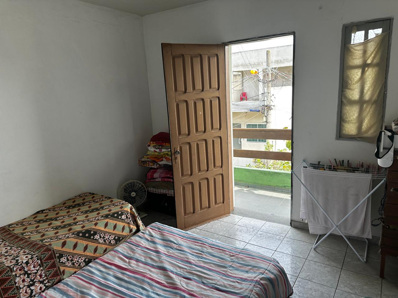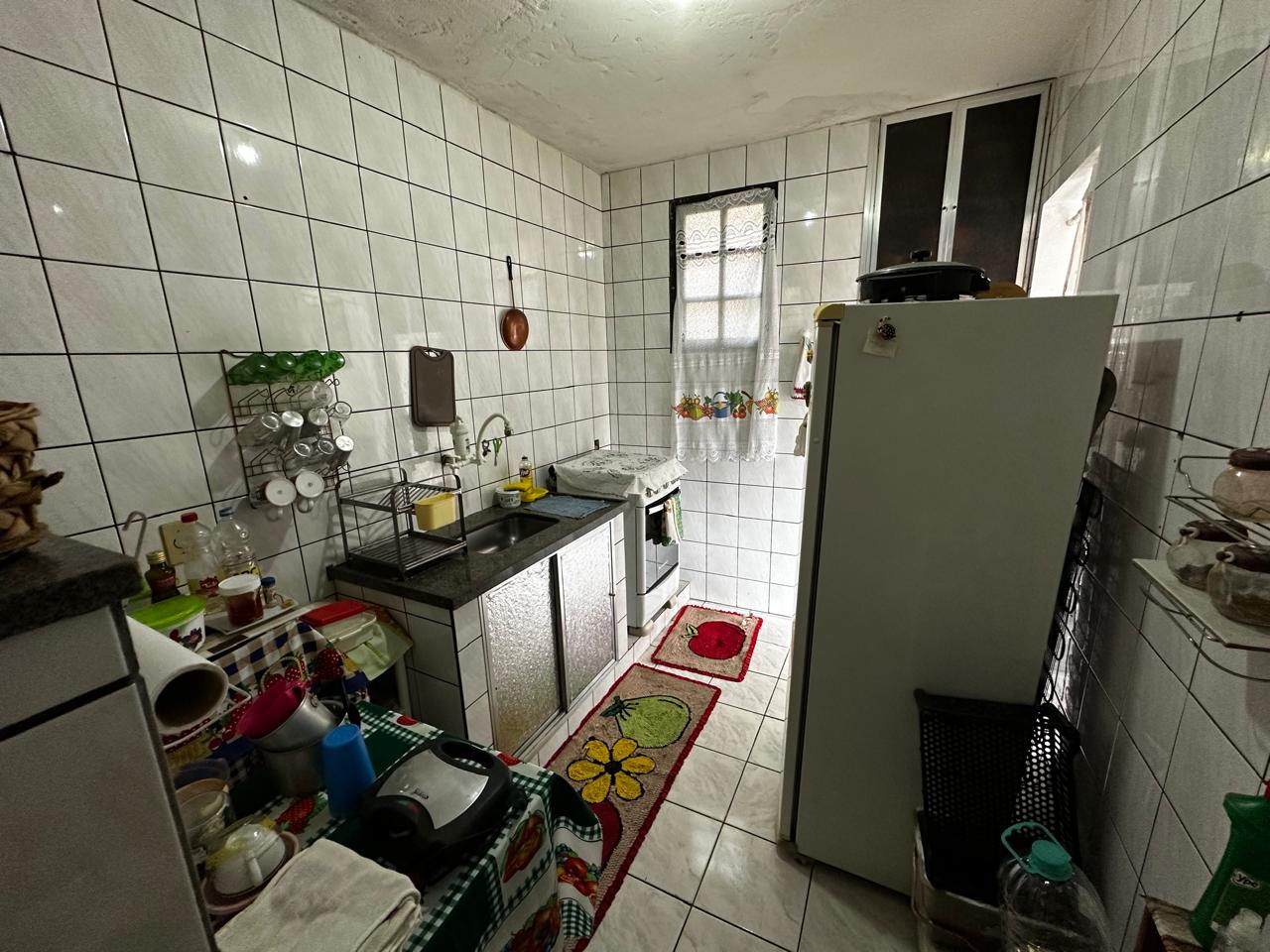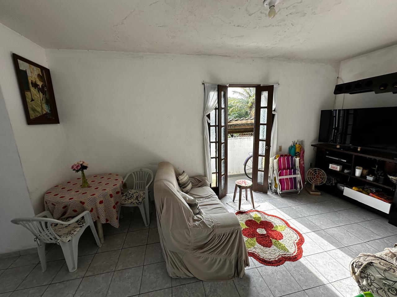Apartamento no segundo pavimento do prédio residencial de três pavimentos, contendo 02 quartos com varanda, um deles suíte, banheiro social, circulação, sala de estar com varanda, cozinha, área de serviço e garagem presa para 01 carro.
