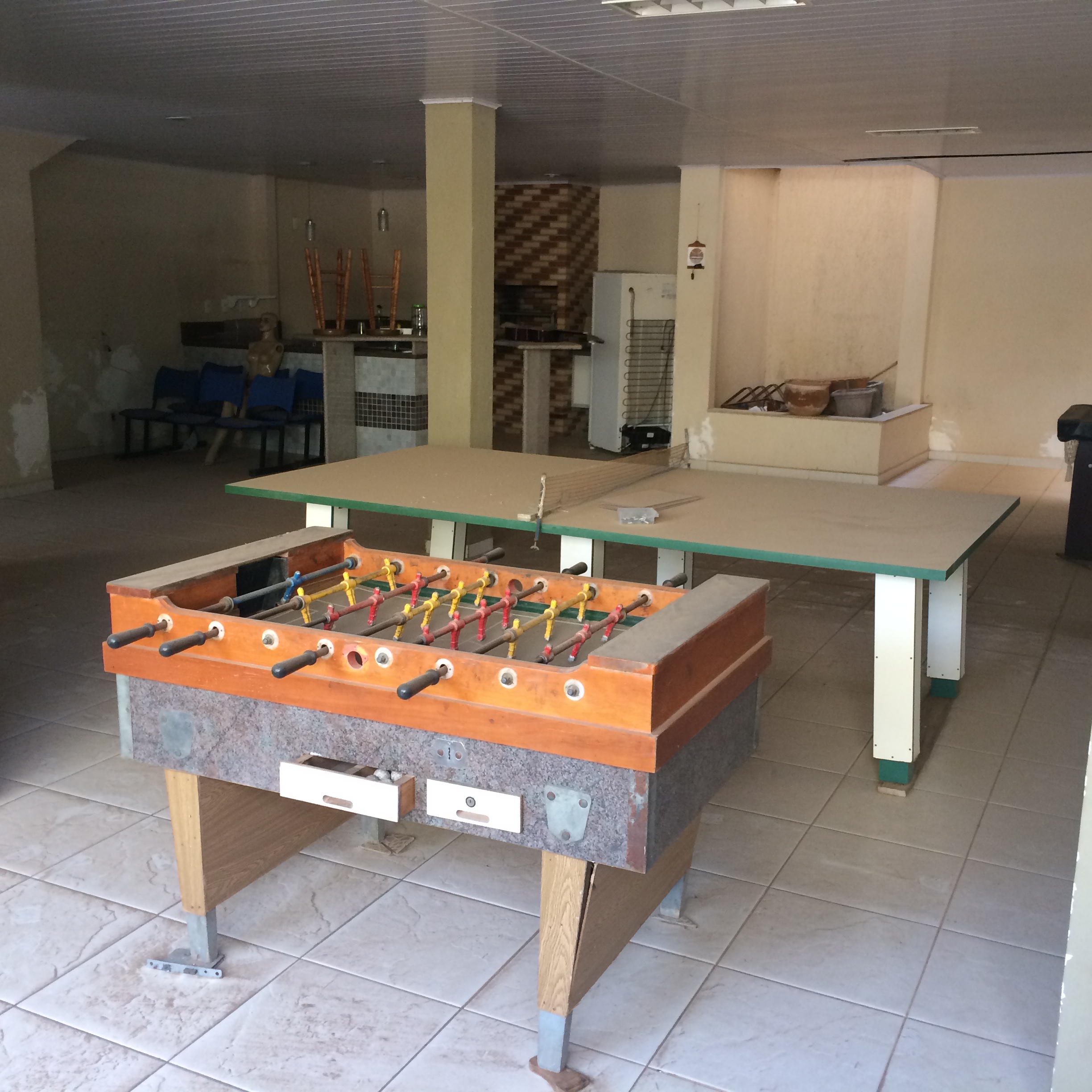 PAVIMENTO TÉRREO : um hall, duas garagens, um depósito, um lavabo, um WC, um quarto, área gourmet com churrasqueira, mesa de ping-pong, mesa de sinuca, mesa de totó, cisterna com 10.000litros, dois jardins e duas escadas de acesso ao primeiro pavimento. Medindo 243,50m².