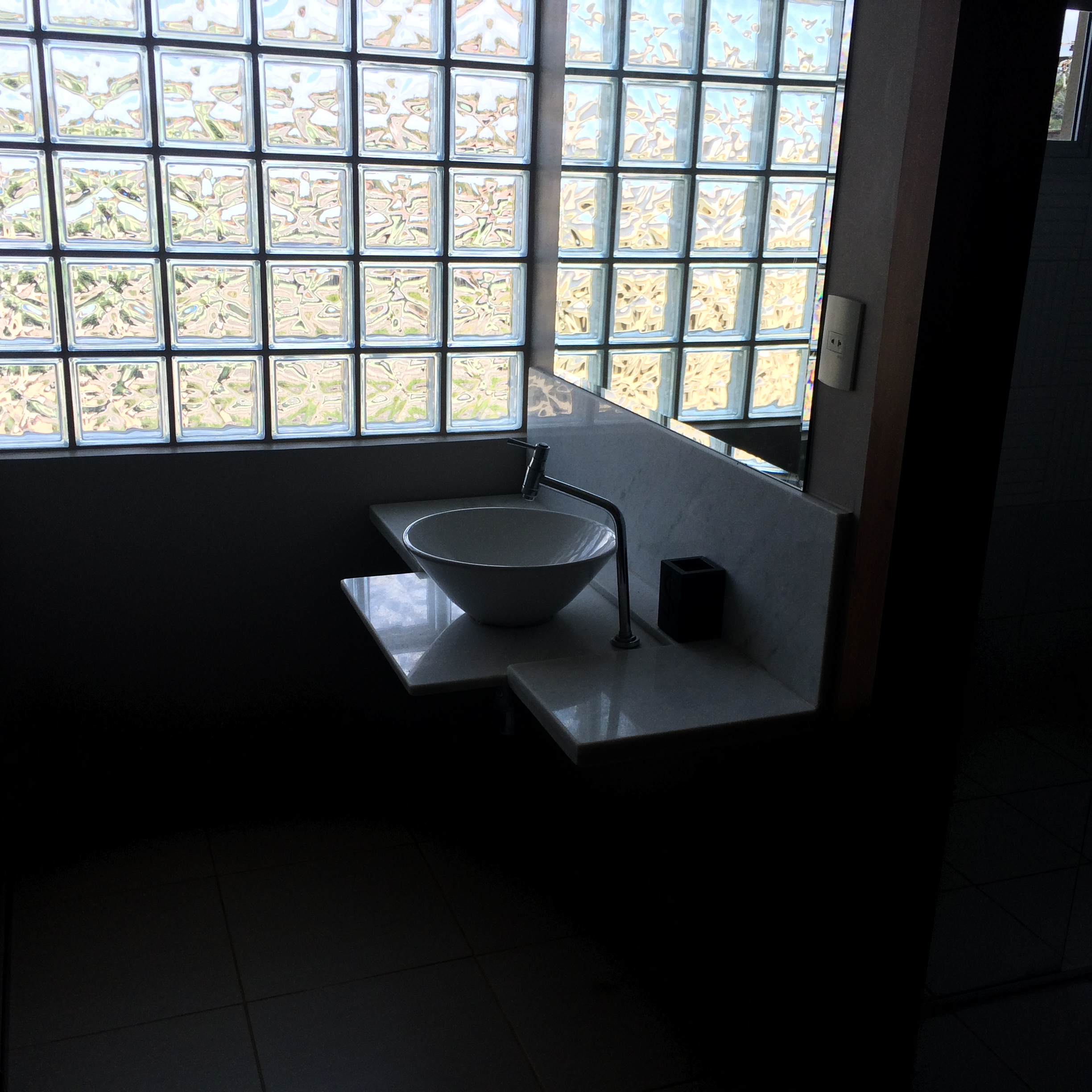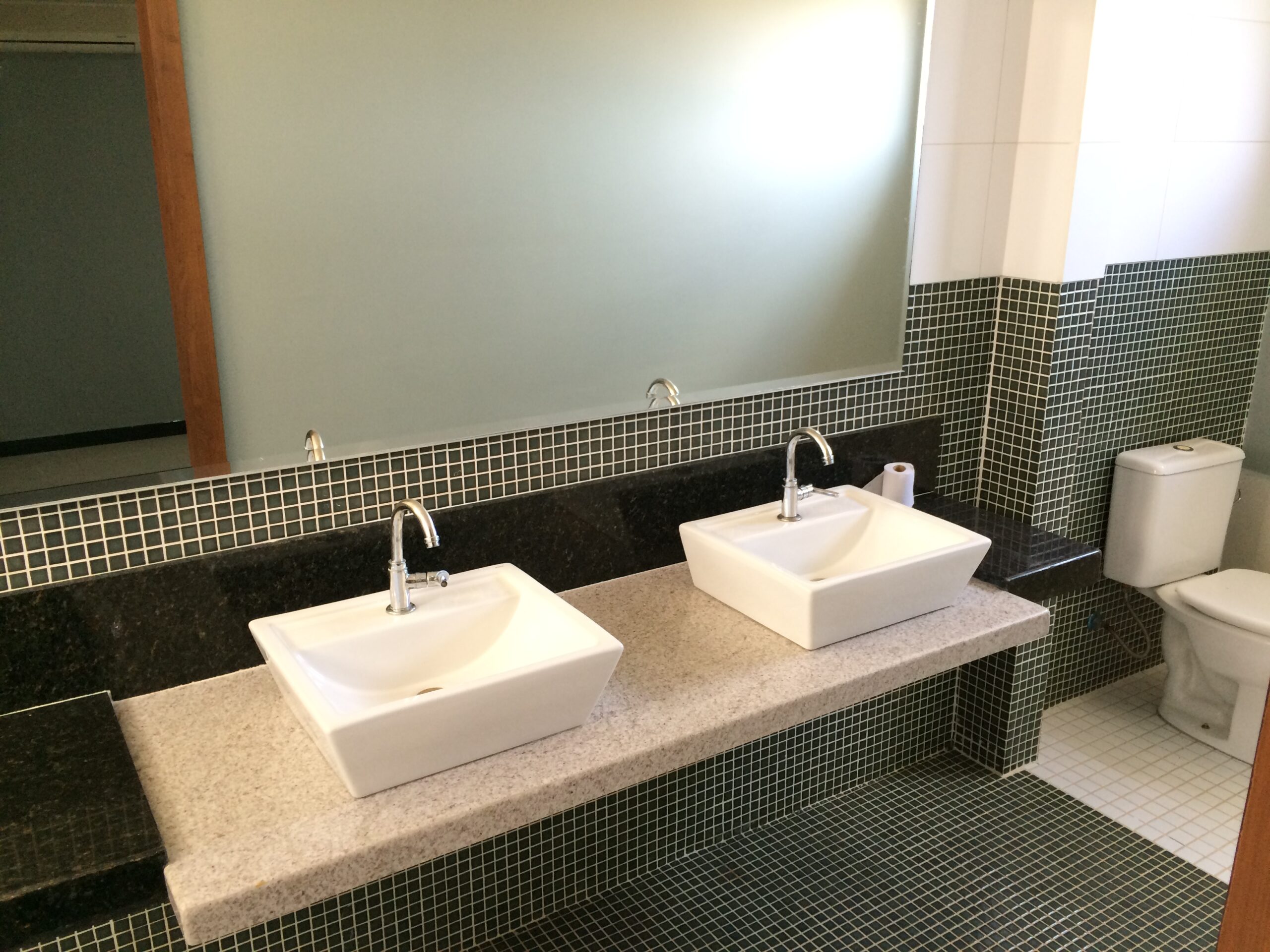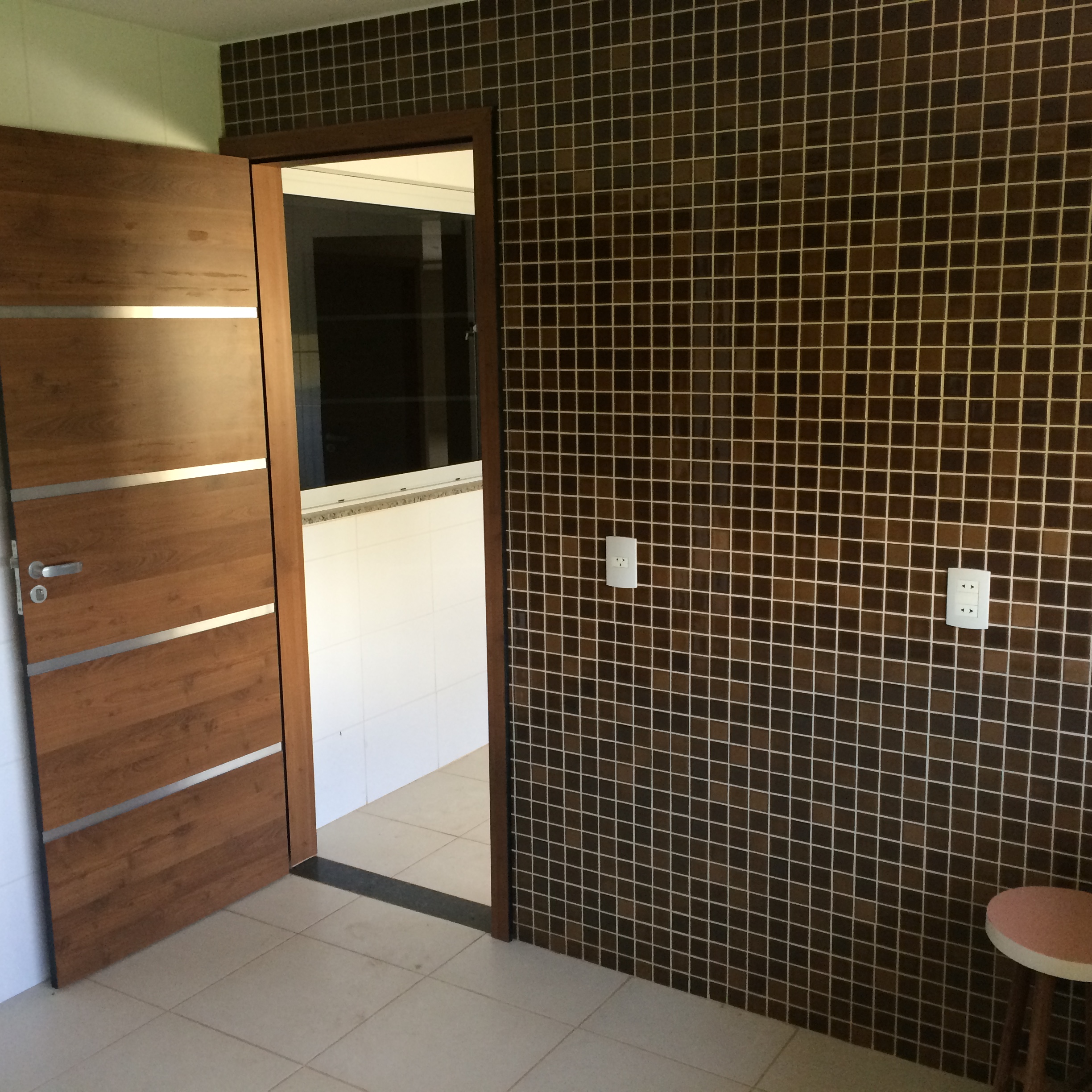 – Cozinha e banheiros decorados com pastilhas 5 x 5.