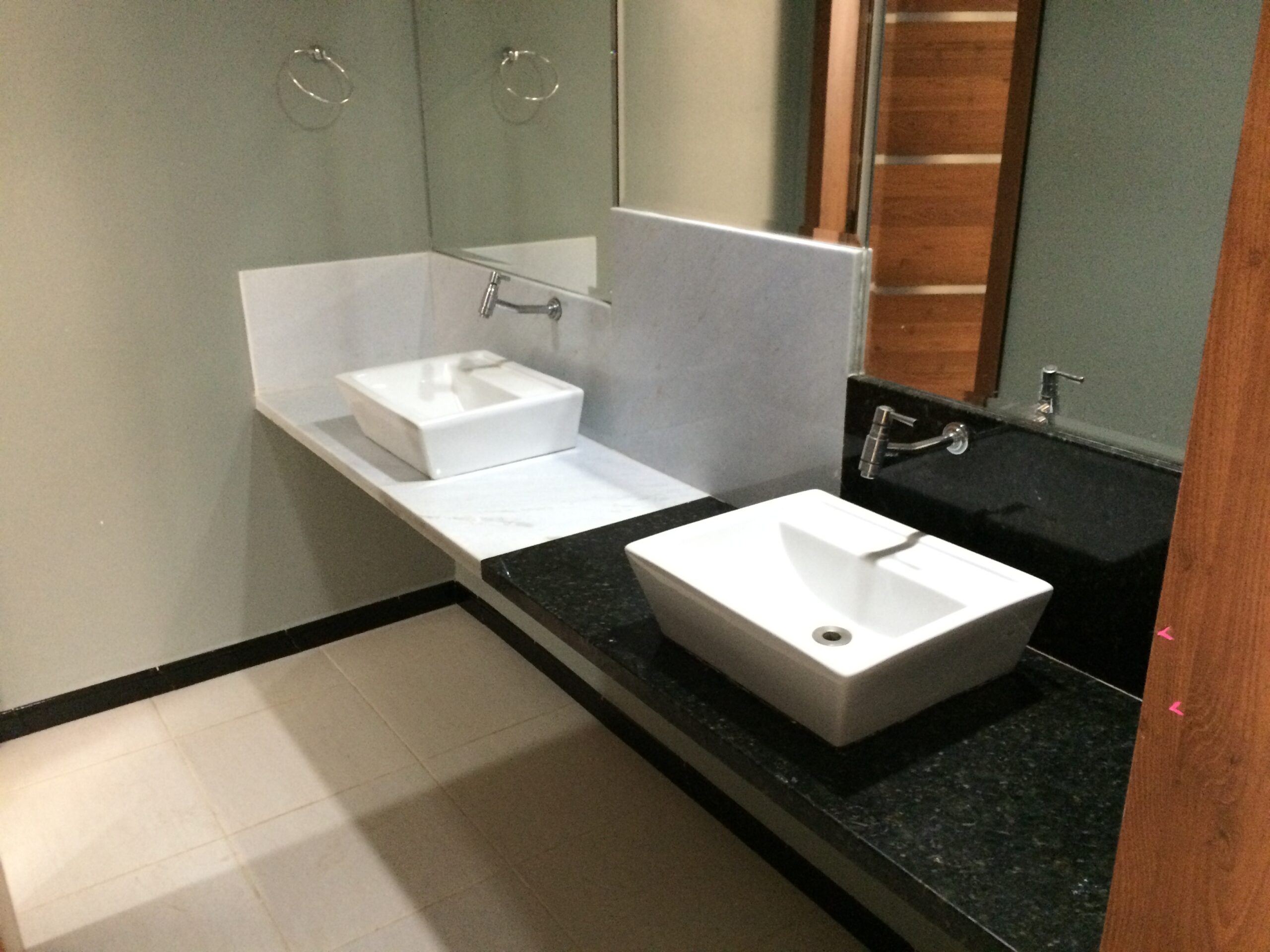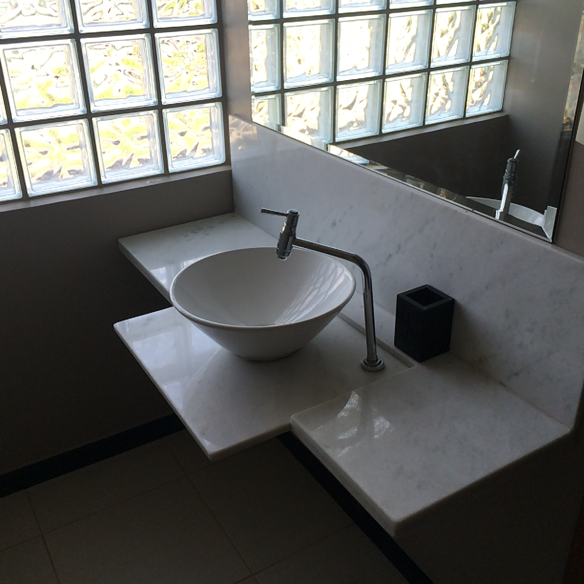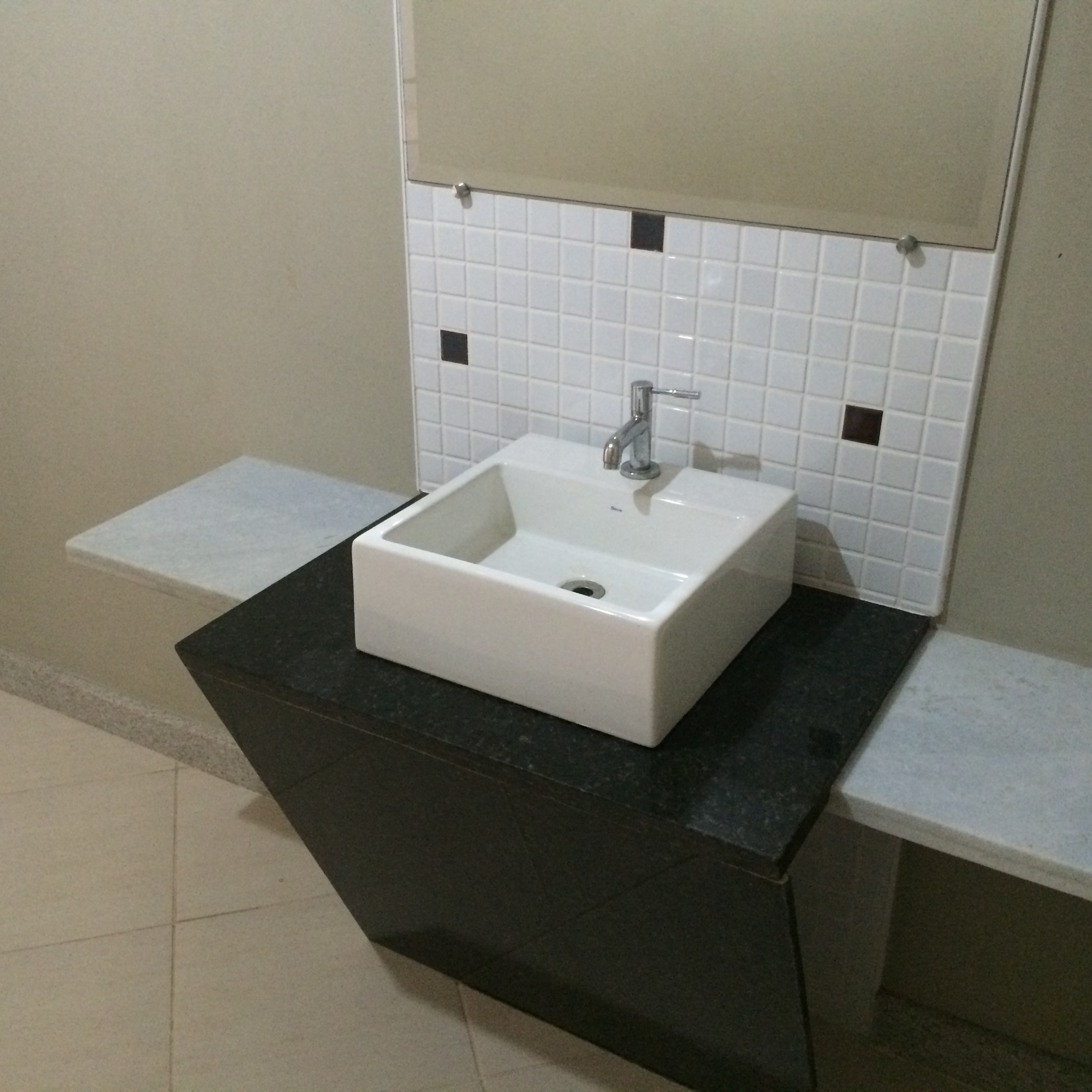 – Cozinha e banheiros decorados com pastilhas 5 x 5.