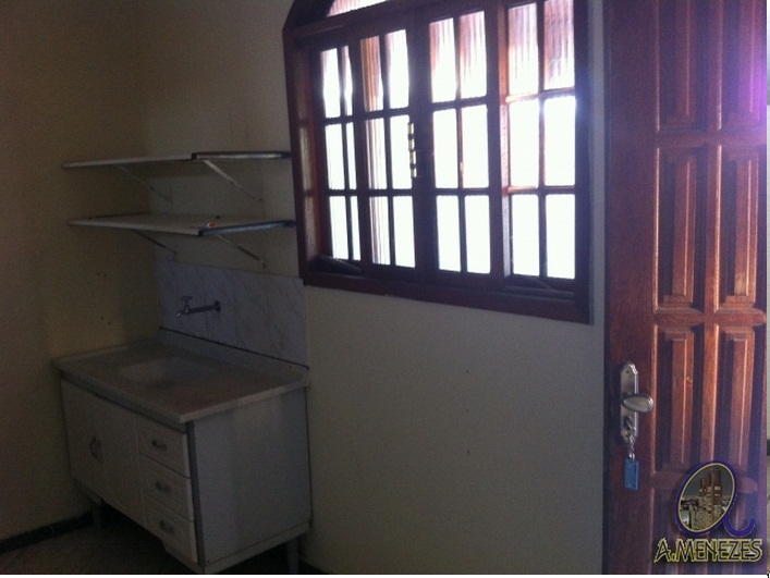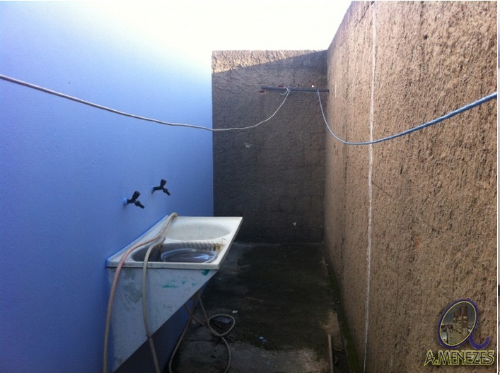 Uma casa residencial coberta de laje contendo: 01 quarto, copa-cozinha, banheiro, varanda, área de serviço e área murada para estacionamento de vários carros.