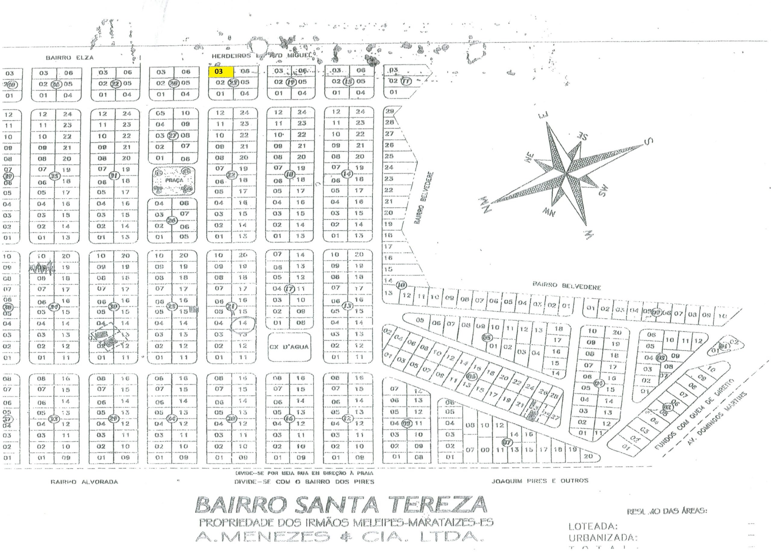 LOTE de terreno de número 03 da quadra 23, registrado sob o número 9.836 de ordem, em 25 de julho de 1962, às folhas 208 do Registro Geral de Imóveis de Itapemirim – ES, medindo doze metros (12,00) de frente, igual medidas nos fundos, por vinte (20,00) metros nas laterais direita e esquerda, ou seja, com duzentos e quarenta (240,00m²) metros quadrados, situado no “BAIRRO SANTA TEREZA”, na Praia de Marataízes – ES, confrontando-se pela frente com a Rua Elias Silva, fundos com o lote nº 06, lado direito com a Subestação da EDP e lado esquerdo com o lote nº 02, conforme planta, objeto da inscrição municipal nº 01.01.403.0107.001.